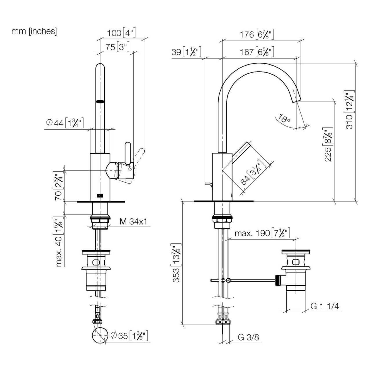- Maße: Ausladung 167 mm, Armaturenhöhe 310 mm