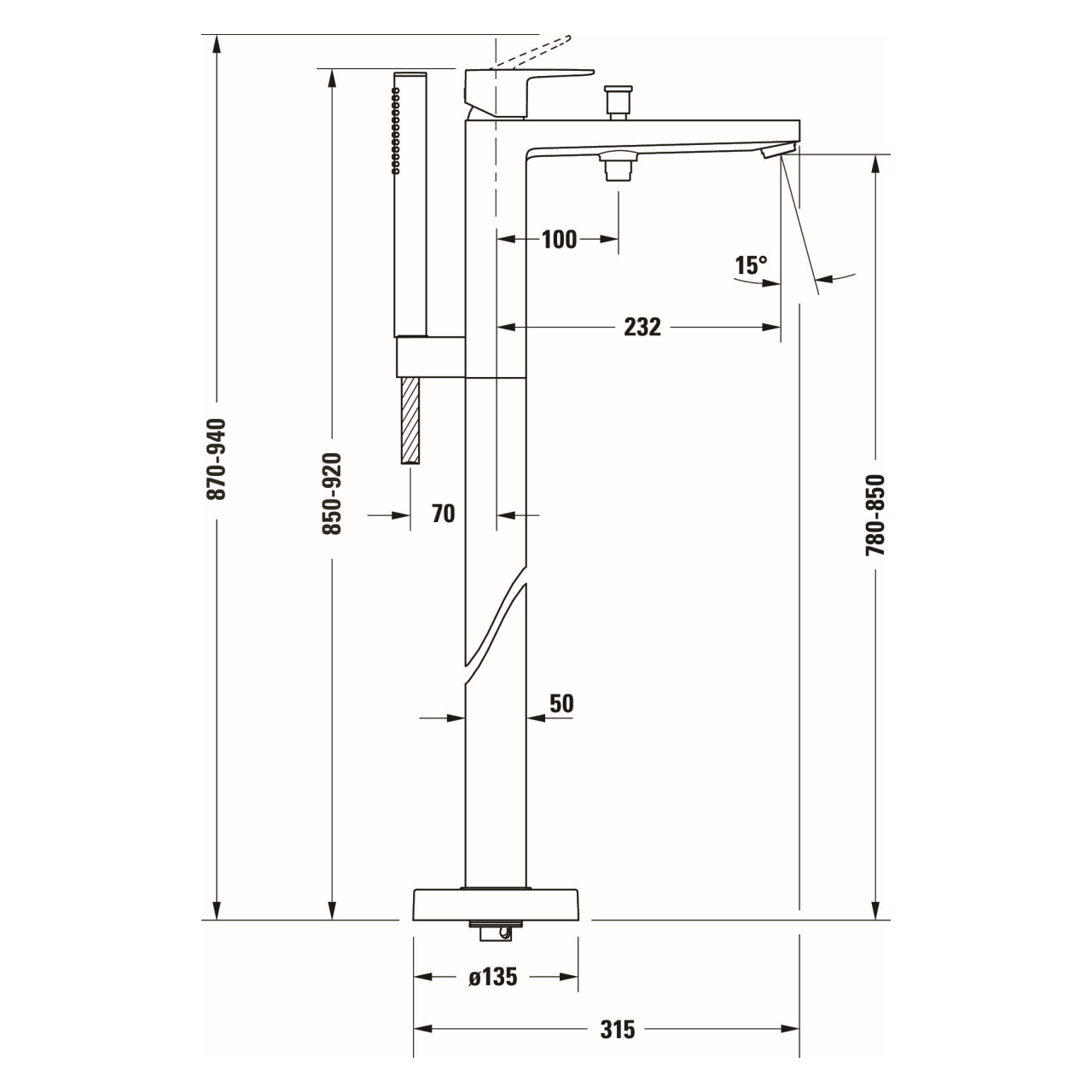 - Montageart: Bodenstehend – ideal für freistehende Badewannen