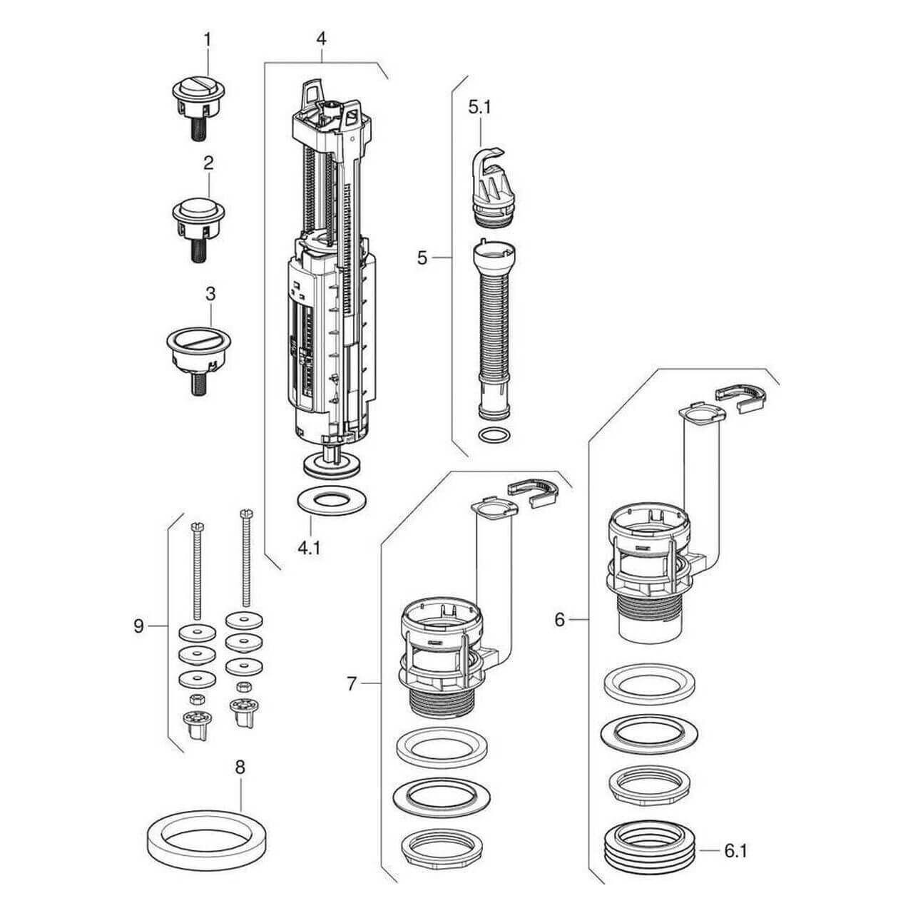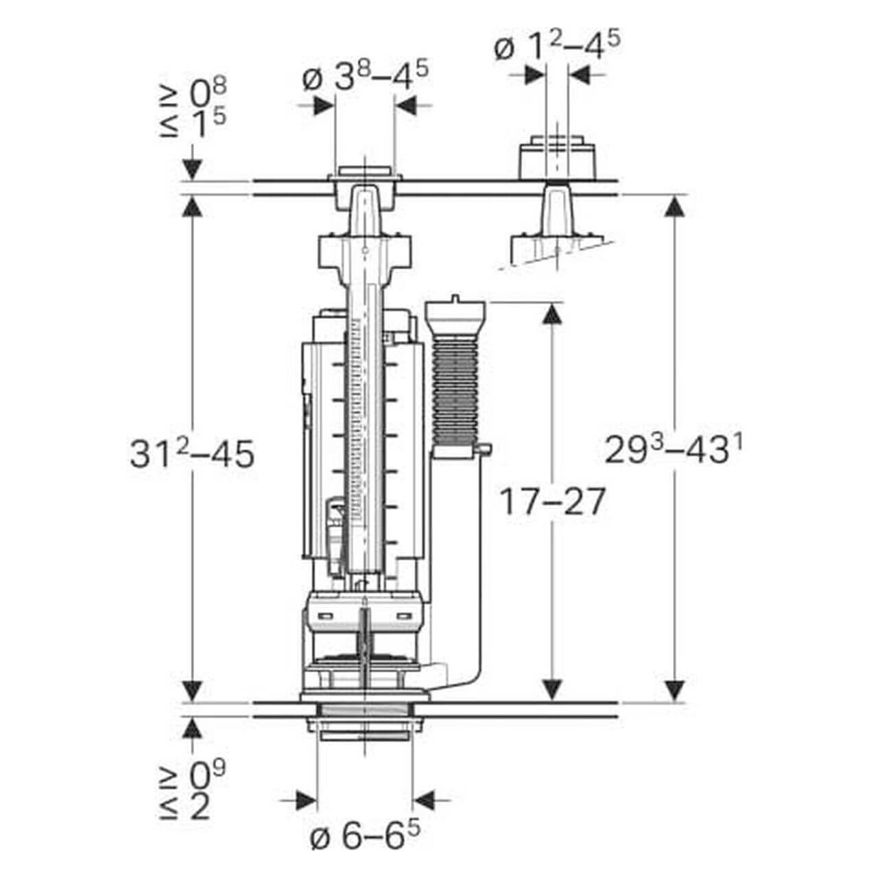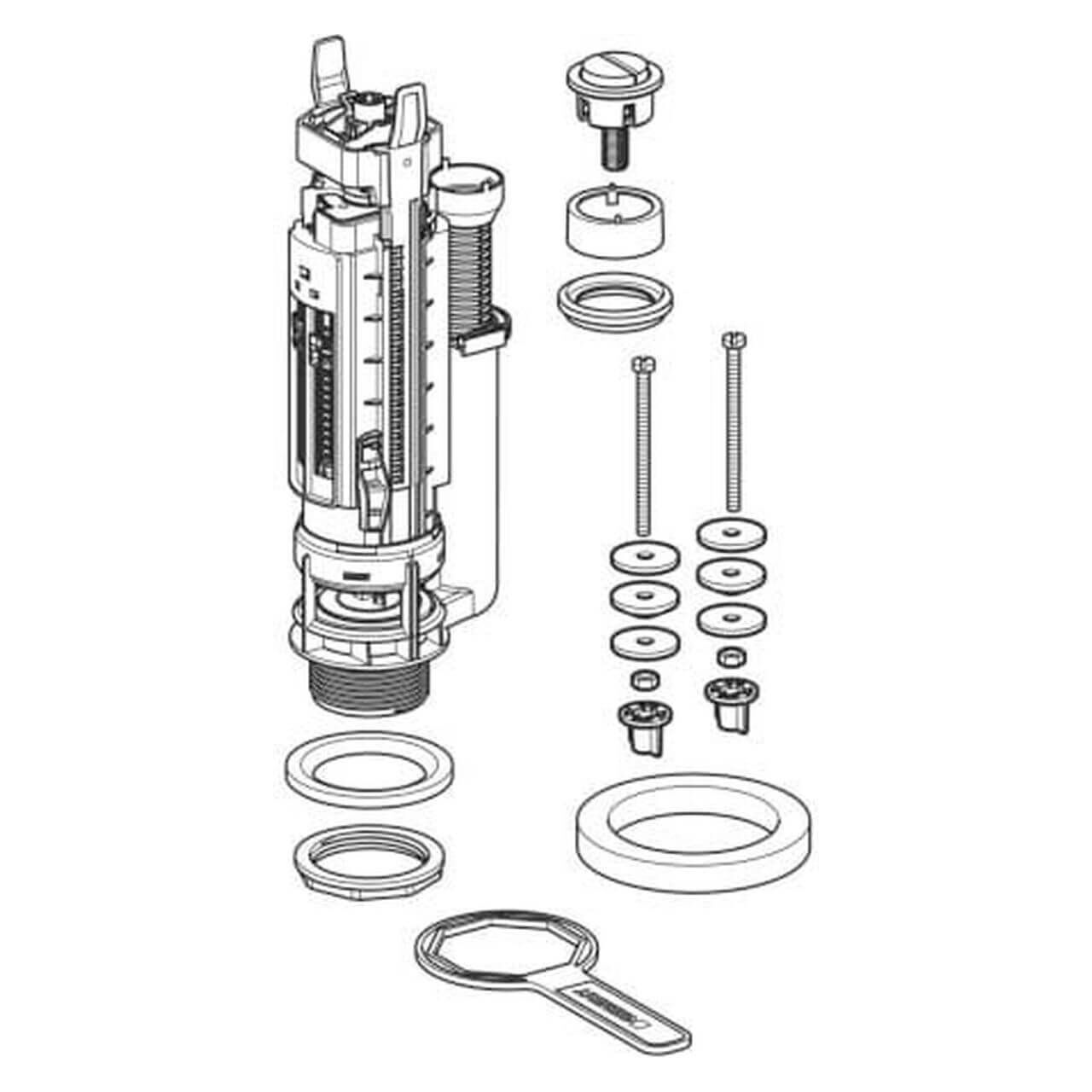 Das Spülventil ist höhenverstellbar und kann somit flexibel an verschiedene Spülkästen angepasst werden. Die einstellbare Spülmenge und das ebenfalls höhenverstellbare Überlaufrohr sorgen für maximale Flexibilität und Effizienz bei der Installation.