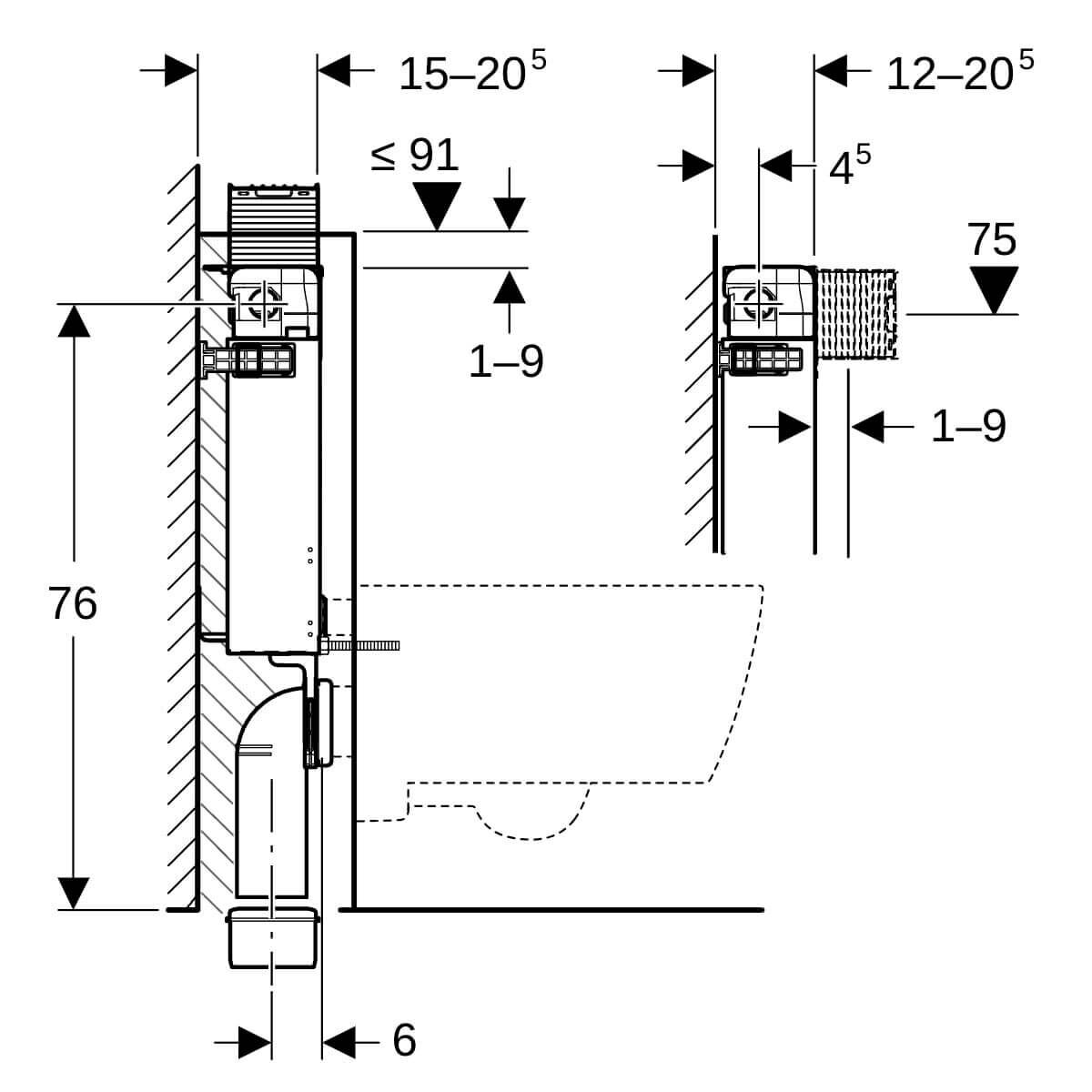 Das Geberit Wand-WC-Element Kombifix BH 82 cm ist eine kompakte und flexible Lösung für den Einbau in teilhohe Vorwandinstallationen und gemauerte Wände. Es ist speziell für Wand-WCs mit Anschlussmaßen nach DIN EN 33:2011-11 konzipiert und bietet eine effiziente 2-Mengen-Spülung.