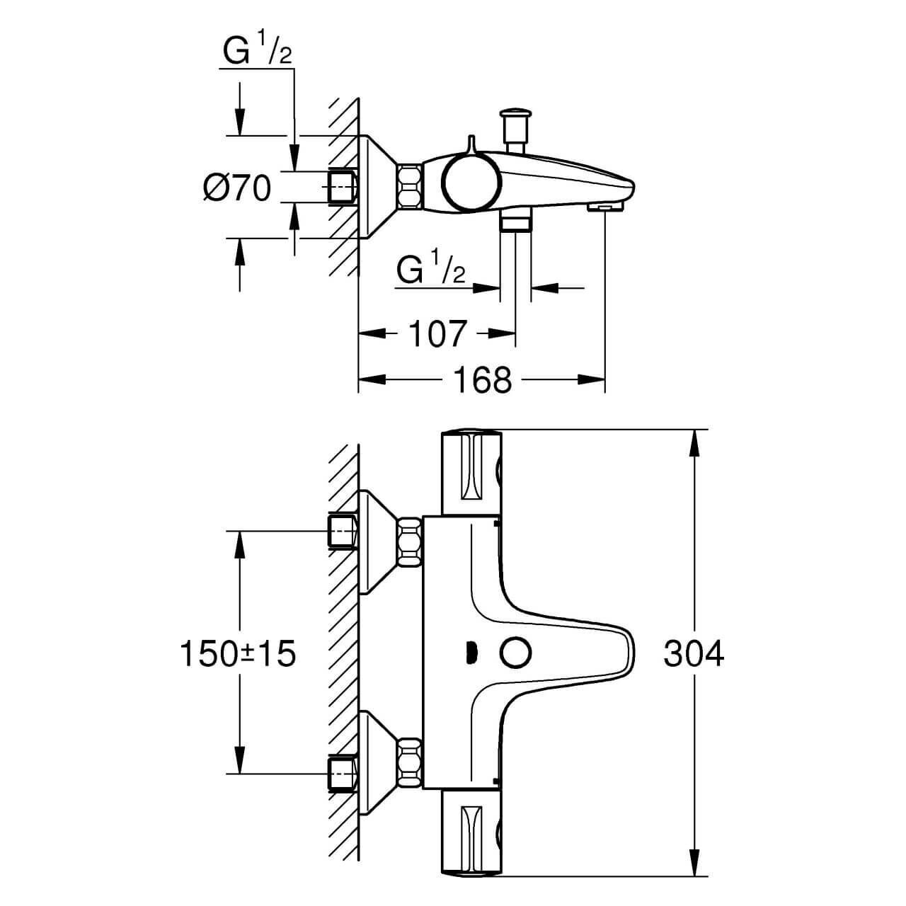 "Grohe Wannenthermostat Grohtherm 800 1/2 Wandmontage Chrom"