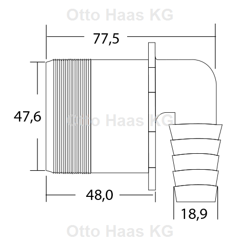 "Haas Schlauchanschluss DN 50 – 90°-Winkel, grau, für Schläuche 18–23 mm"