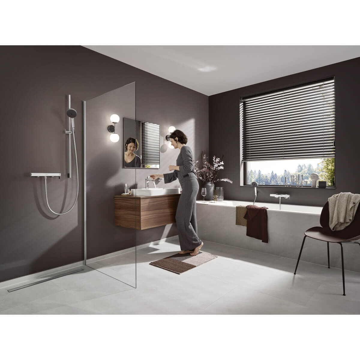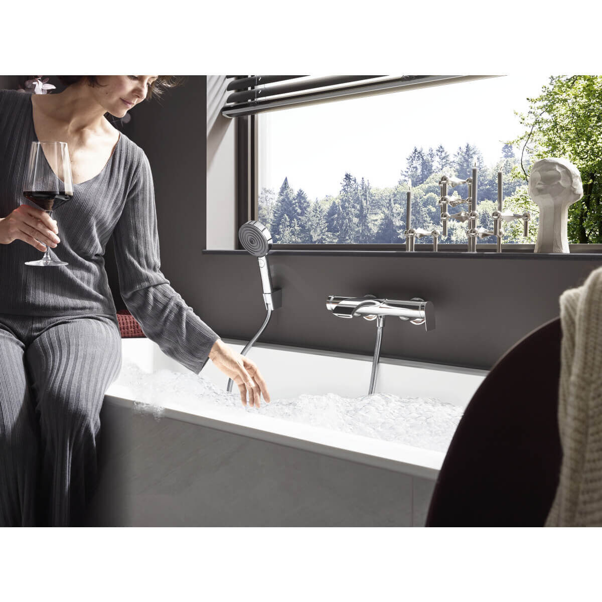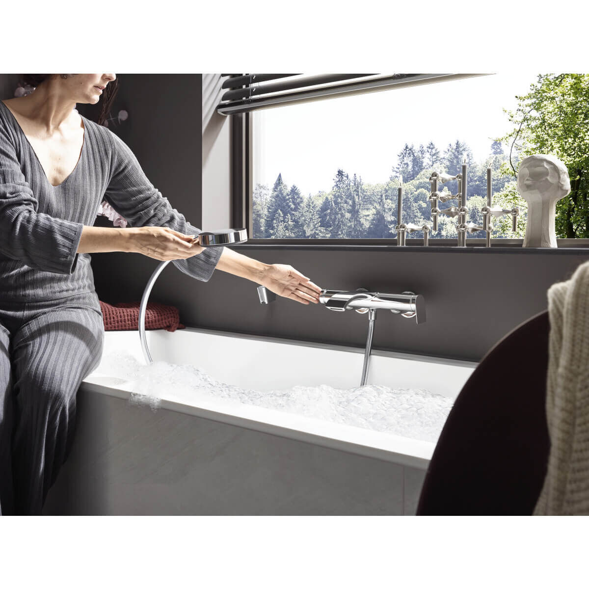 Mit ihrem seitlichen Griff, der durch sein ergonomisches Design besticht, lassen sich Wassermenge und -temperatur komfortabel einstellen. Der Wechsel von Wanneneinlauf auf Duschkopf gelingt mit einem einfachen Knopfdruck auf die seitliche Select-Taste. Nach dem Abdrehen des Wassers stellt die Armatur automatisch wieder auf den Wanneneinlauf um. Die hochwertige, verchromte Oberfläche bleibt dabei dauerhaft glänzend und ist leicht zu reinigen.