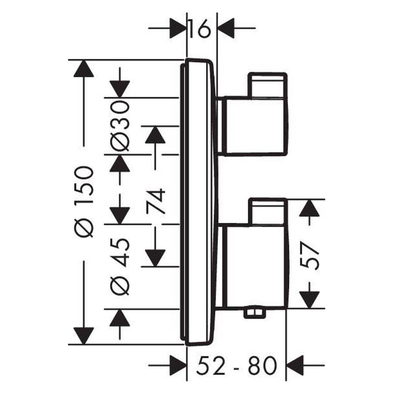 Der Thermostat wird auf den Hansgrohe iBox universal Grundkörper montiert und unter Putz verlegt. Dadurch bleibt mehr Platz in der Dusche oder am Wannenrand, und die Technik ist elegant verborgen. Die glänzende Chromoberfläche der Bedienelemente ist leicht zu reinigen und behält ihren Glanz über viele Jahre hinweg.