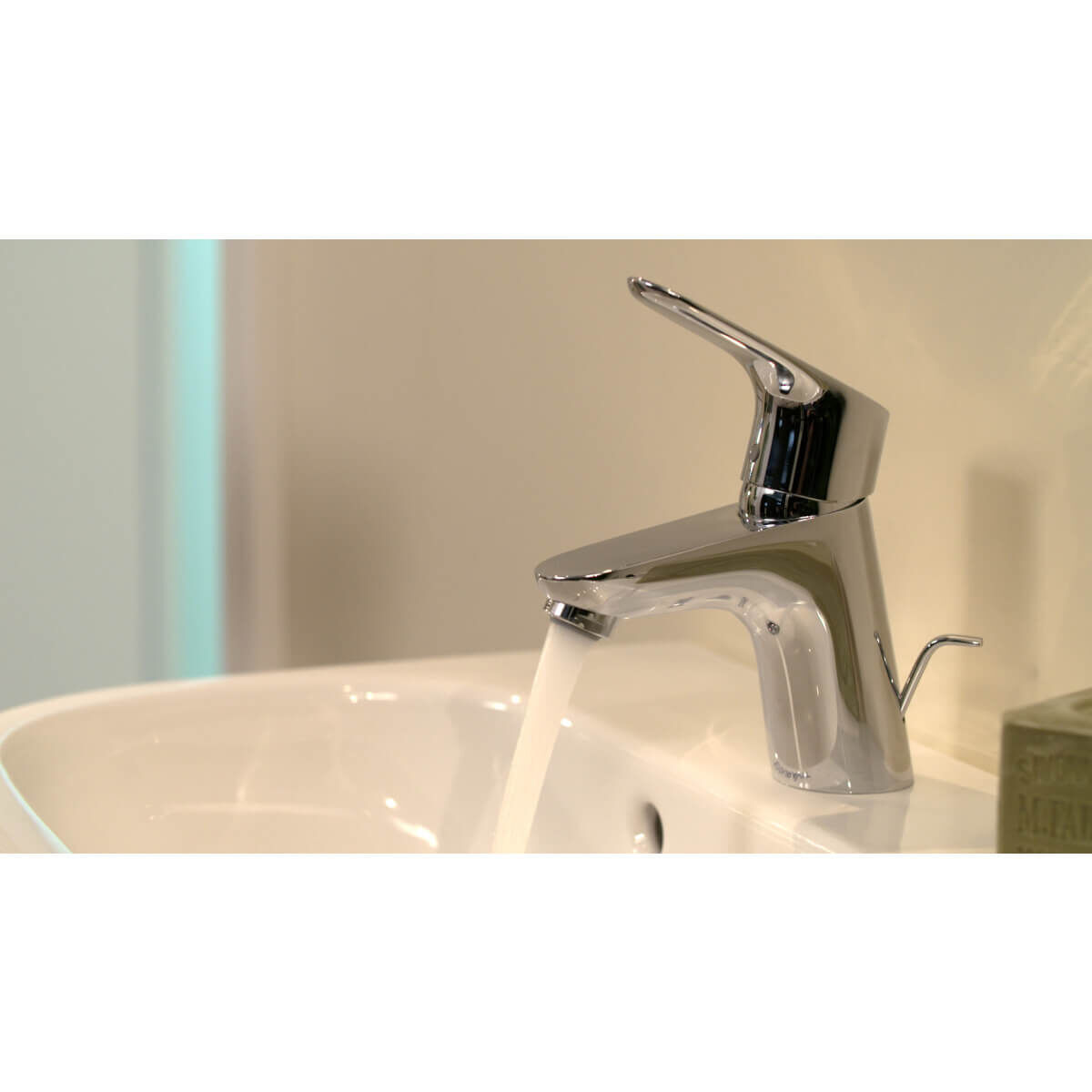 Die Hansgrohe Focus 70 Einhebel-Waschtischmischer bringt modernes Design und hohen Bedienkomfort ins Badezimmer. Mit einer klaren, flächigen Formensprache passt diese kompakte Armatur perfekt in jedes Badambiente. Dank der EcoSmart-Technologie wird die Durchflussmenge auch bei hohem Wasserdruck auf max. 5 l/min begrenzt, was sowohl Umwelt als auch Geldbeutel schont. Gleichzeitig sorgt die AirPower-Technologie für einen vollen Strahl, der weniger spritzt und ein angenehmes Wassergefühl bietet.