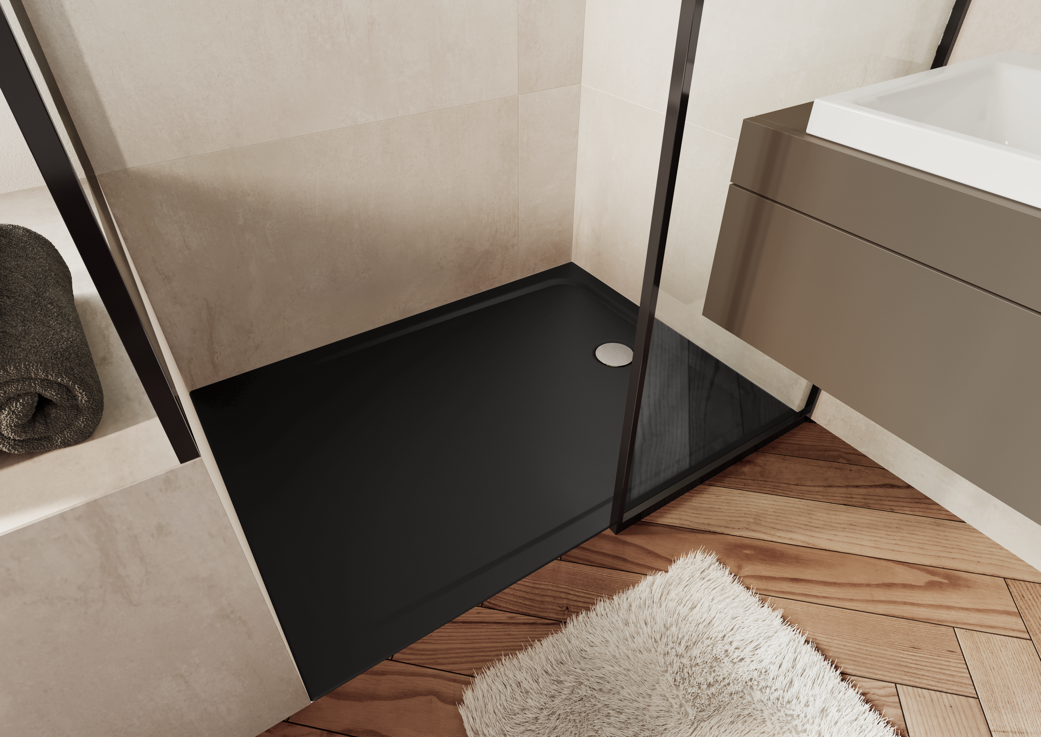 - Bodenebenes Design: Die flache Bauweise ermöglicht einen komfortablen Einstieg und sorgt für ein modernes, barrierefreies Duschvergnügen.