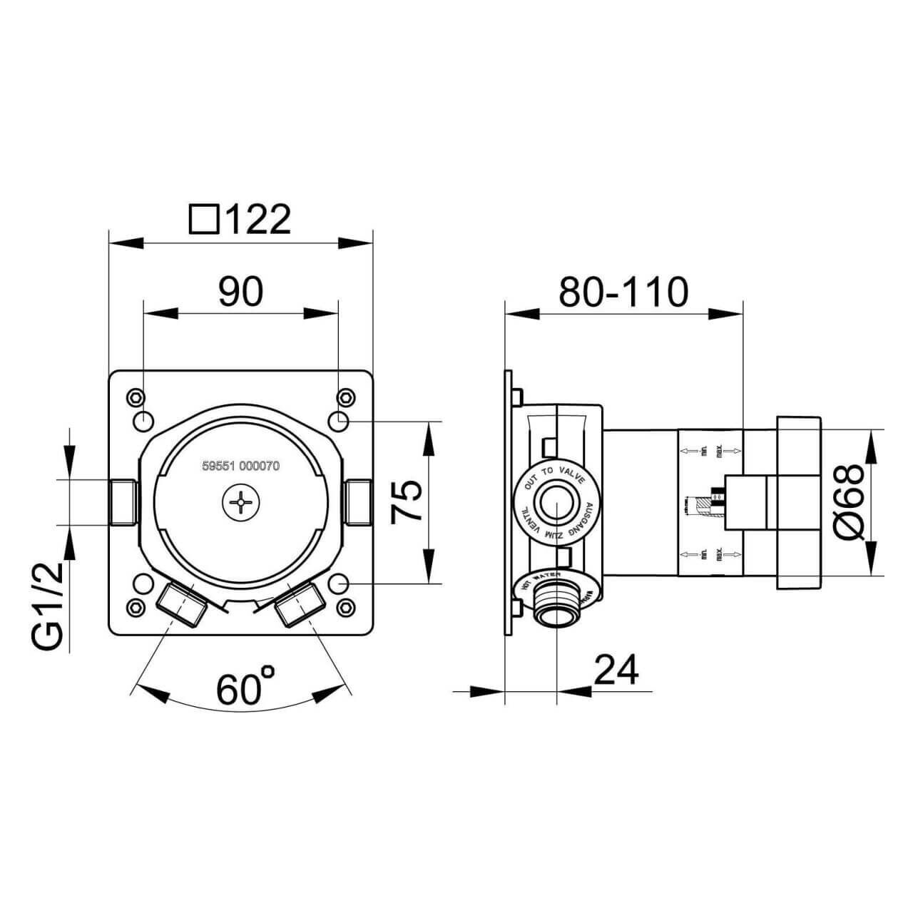 Der KEUCO Grundkörper IXMO ist speziell entwickelt für den Einsatz von Unterputz-Brause-Einhebelmischern und bietet eine Einbautiefe von 80 bis 110 mm. Dank seiner robusten Konstruktion und präzisen Verarbeitung sorgt er für eine einfache Installation und zuverlässige Funktionalität Ihrer Badarmaturen.