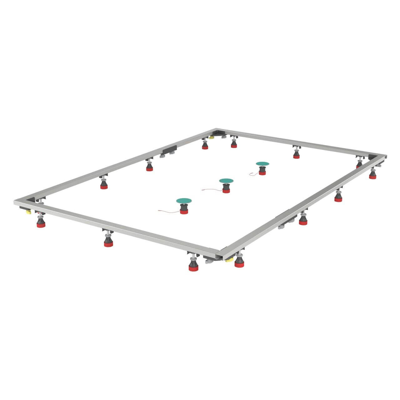 Der Montagerahmen sorgt dafür, dass alle 60 cm ein tragender Auflagepunkt vorhanden ist, was besonders bei Mineralgusswannen ohne tragende Verrippungen essenziell ist. Der Montagerahmen eignet sich nur für Duschwannen mit vollflächigem oder geschlossenem Untergrund und ist ausgelegt für Wannen, deren Unterseite eine Ebenheitsabweichung von maximal 3 mm aufweist.