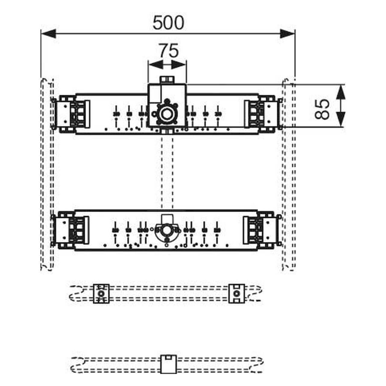 Die TECE Urinal-Anschlusseinheit TECEprofil mit Spülergehäuse U 1 ist die ideale Lösung für eine zuverlässige und elegante Urinalinstallation. Diese vormontierte Einheit besteht aus einer schallentkoppelten Traverse aus verzinktem Stahl und einem TECE Urinalspülergehäuse mit Vorabsperrung und Rohbauschutz. Sie ist kompatibel mit manuellen und elektronischen Betätigungssystemen, die separat erhältlich sind, und bietet höchste Flexibilität für den Einsatz in modernen Sanitäranlagen.