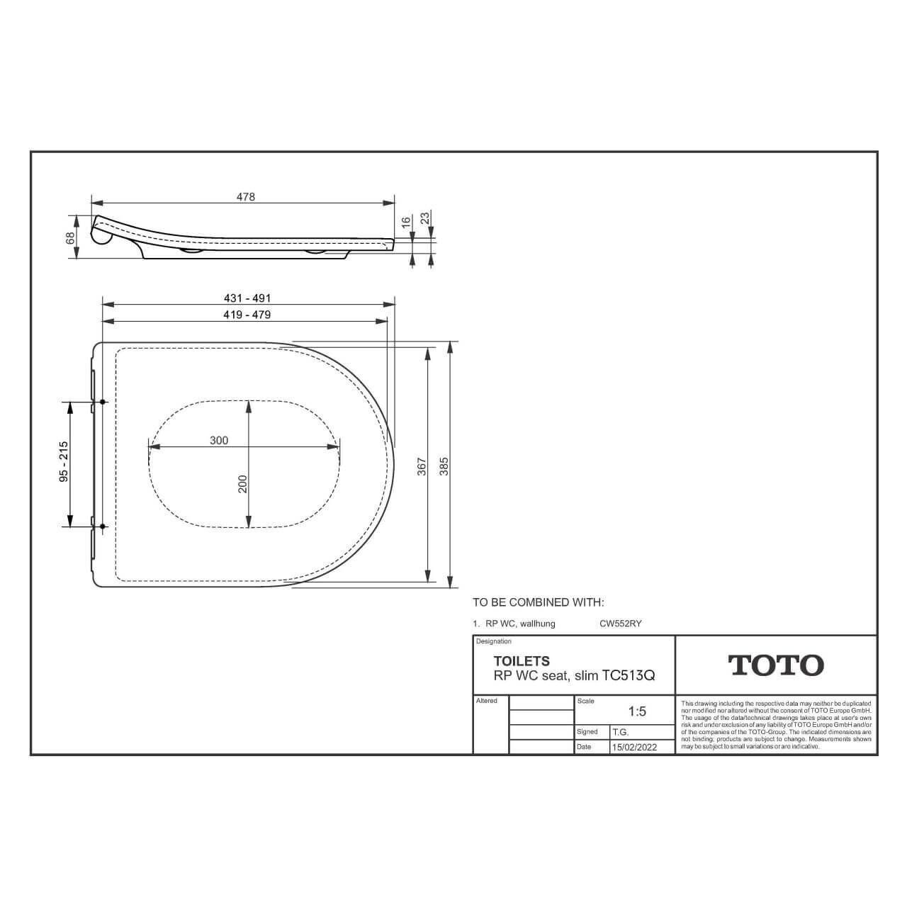 - Kombinierbar mit TOTO WCs: Optimal geeignet für das wandhängende TOTO WC RP CW552RY, ideal für eine harmonische Badezimmergestaltung.