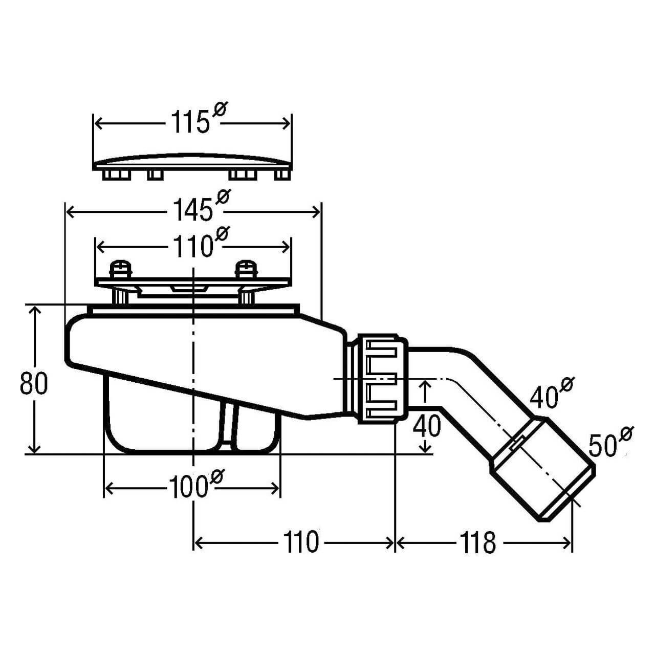 - Durchmesser: 115 mm, passend für flache Duschwannen
